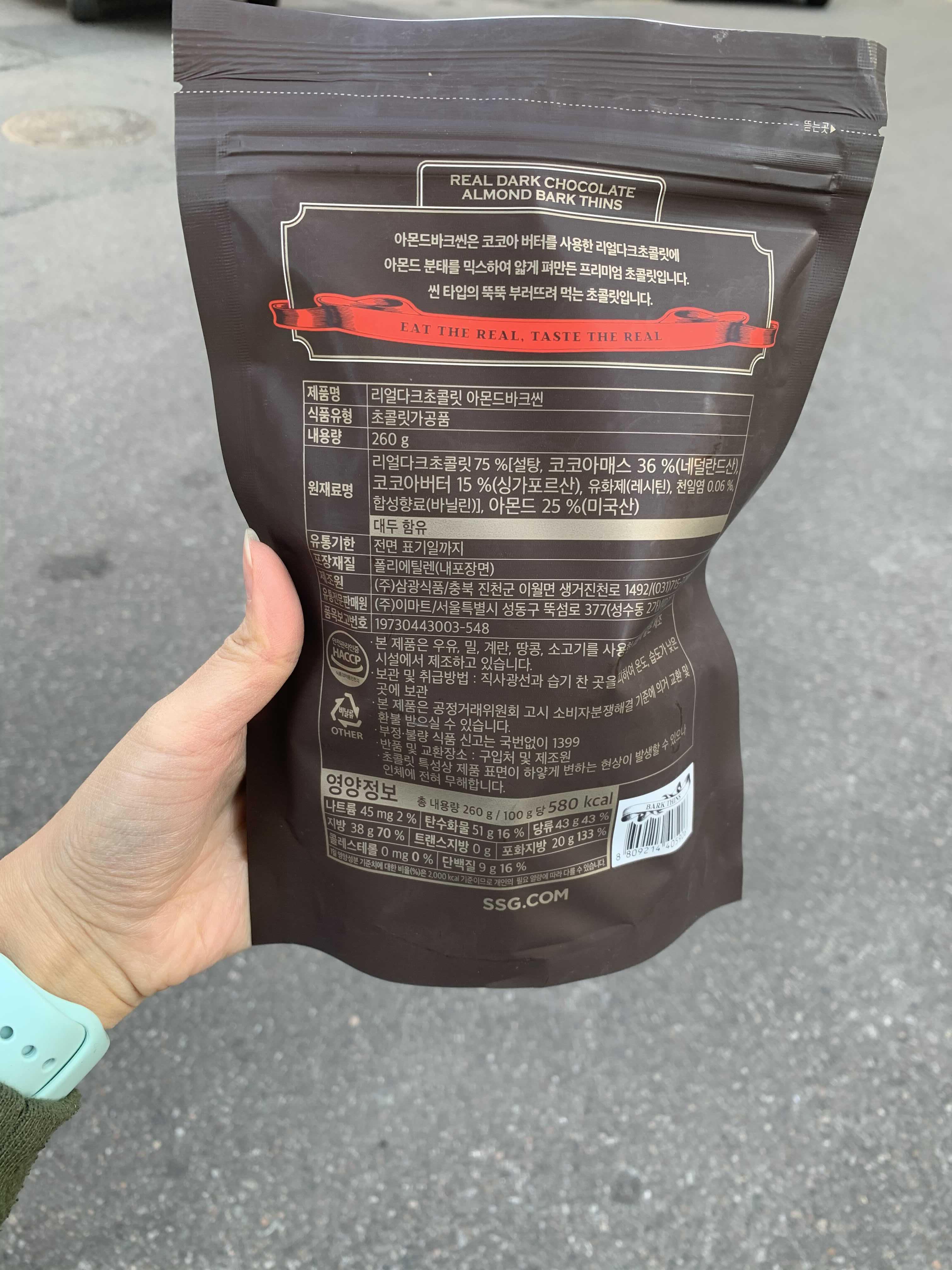 참고로 저노무 다크초콜릿 아몬드 바크씬은 안파는 곳도 있어서, 전 이마트24에서 구매했어요.