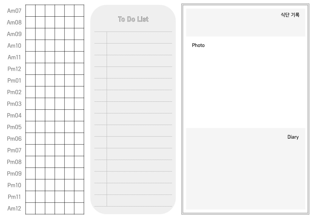 전 한 페이지를 다 쓰는것도 좋아하고, 다이어를 워낙 다채롭게 다양하게 꾸미다보니까ㅋㅋㅋ 자꾸 서식을 만들게되요...