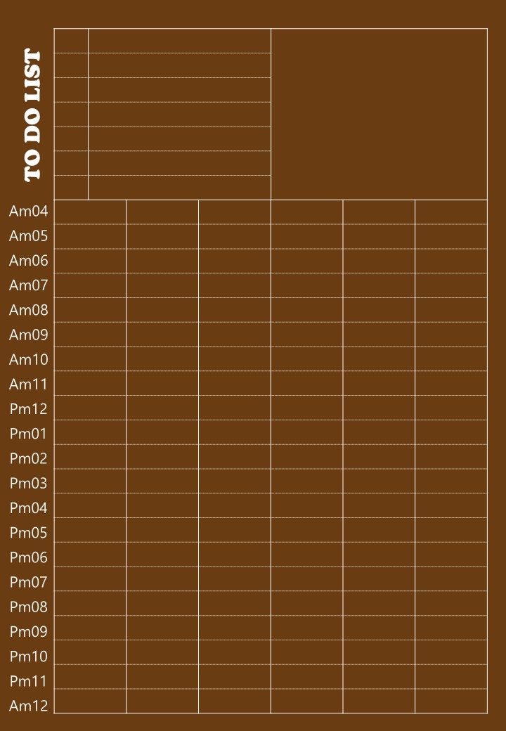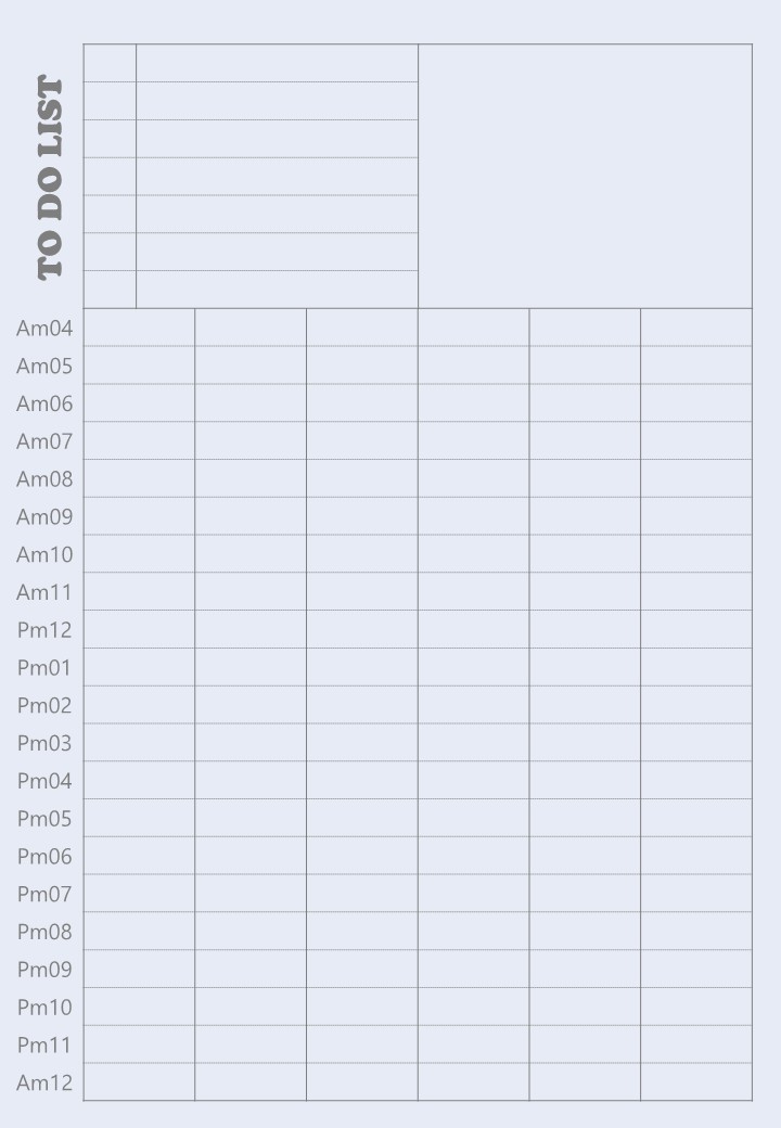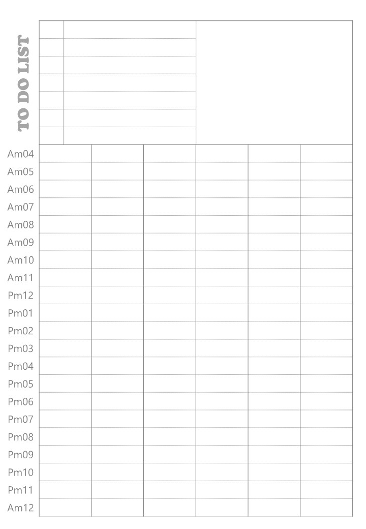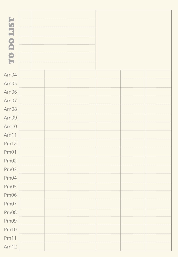 서식은 ToDoList(할일체크칸)과 사진 그외 메모등을 남길 수 있는 칸, 그리고 가장 많은 영역을 차지하는 새벽4시부터 오전12시까지의 시간대별 일정등을 쓸 수 있는 공간으로 이뤄져있습니다.