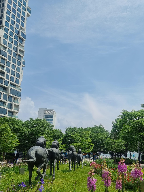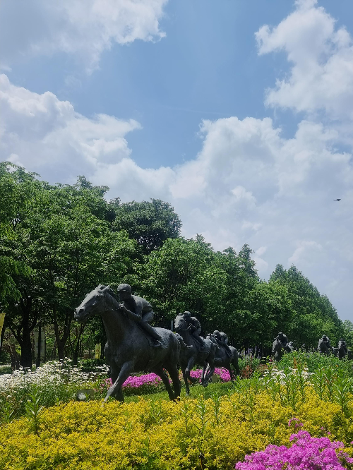 다양한 꽃을 군마상 주변에 심어뒀다.