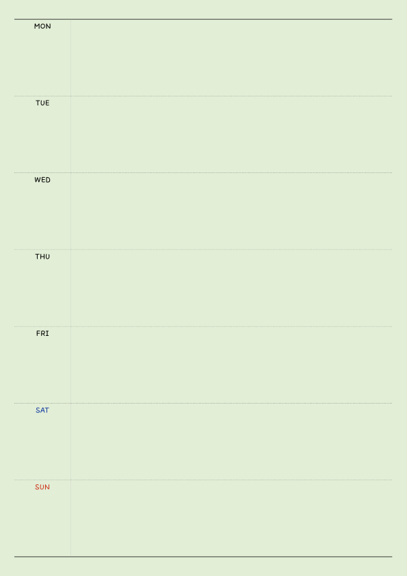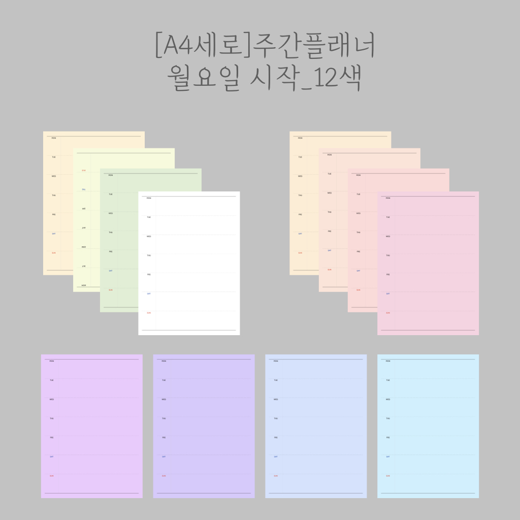 기본적인 주간플래너를 만들었습니다. 월요일을 시작으로 해서 만들었고 색도 다양하게 만들어서 PDF로 만들어두었으니...