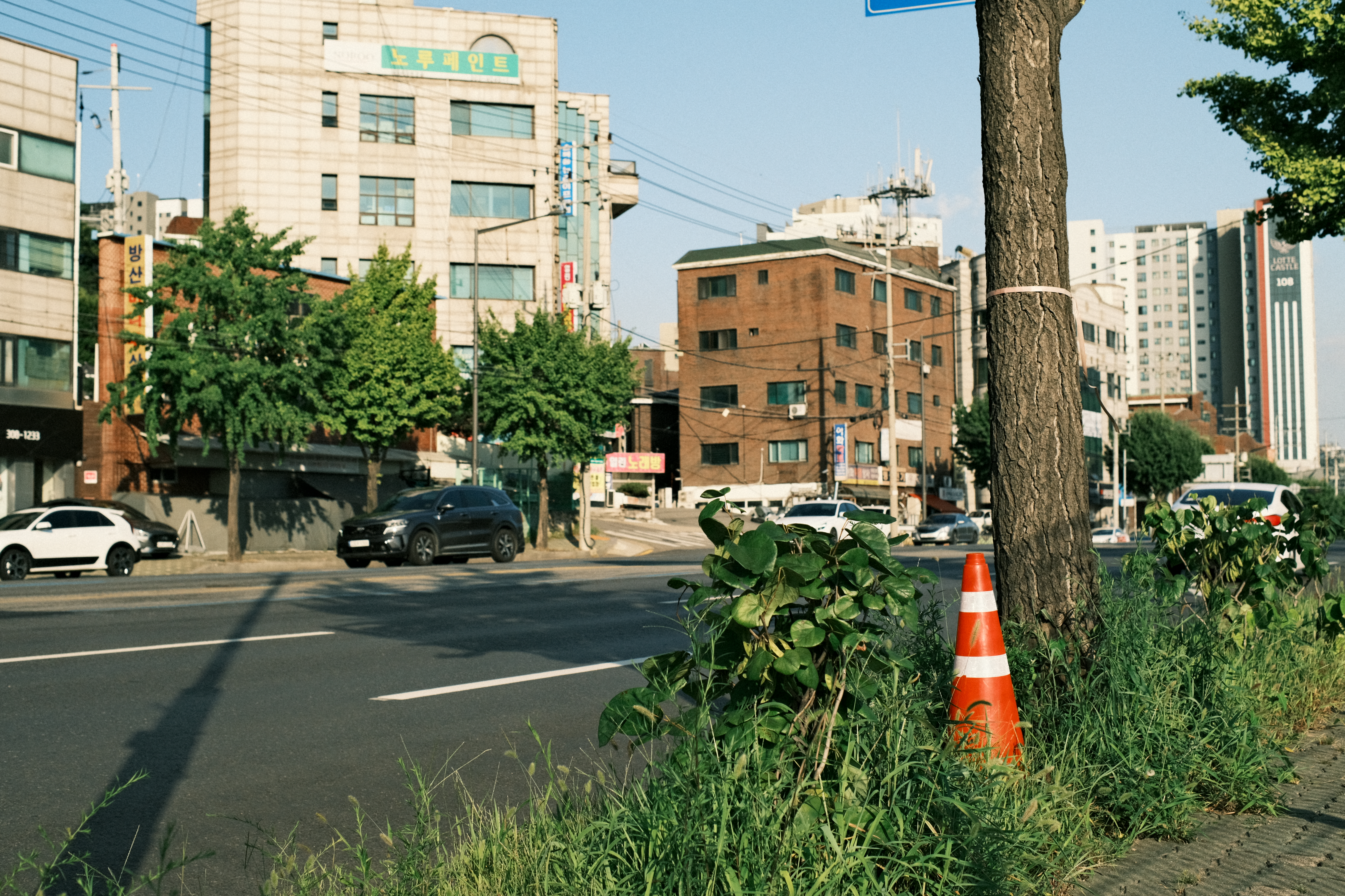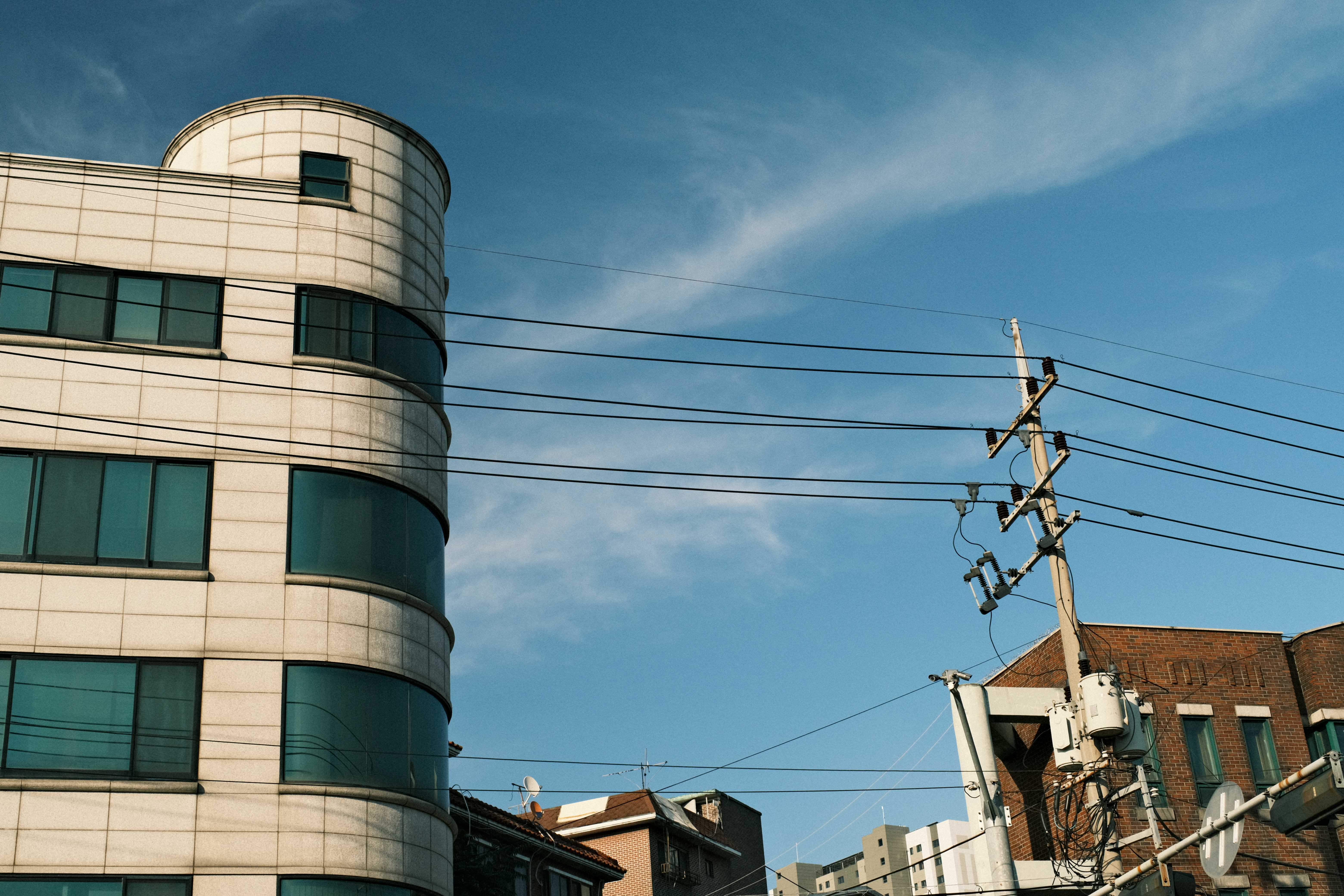 이 사진에사 전봇대 음영이 소묘처럼 단계별로 표현된거 같아 재밌다.