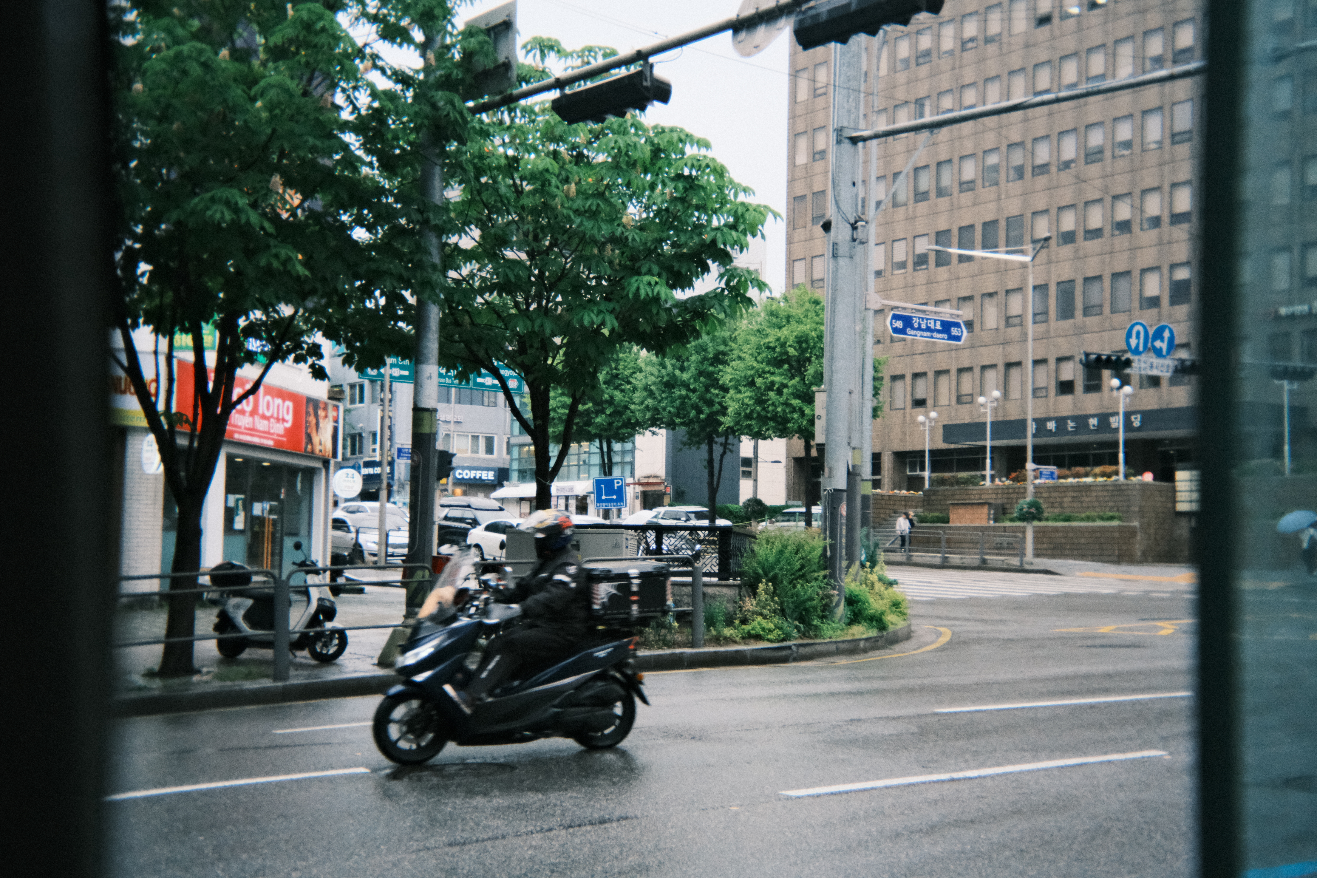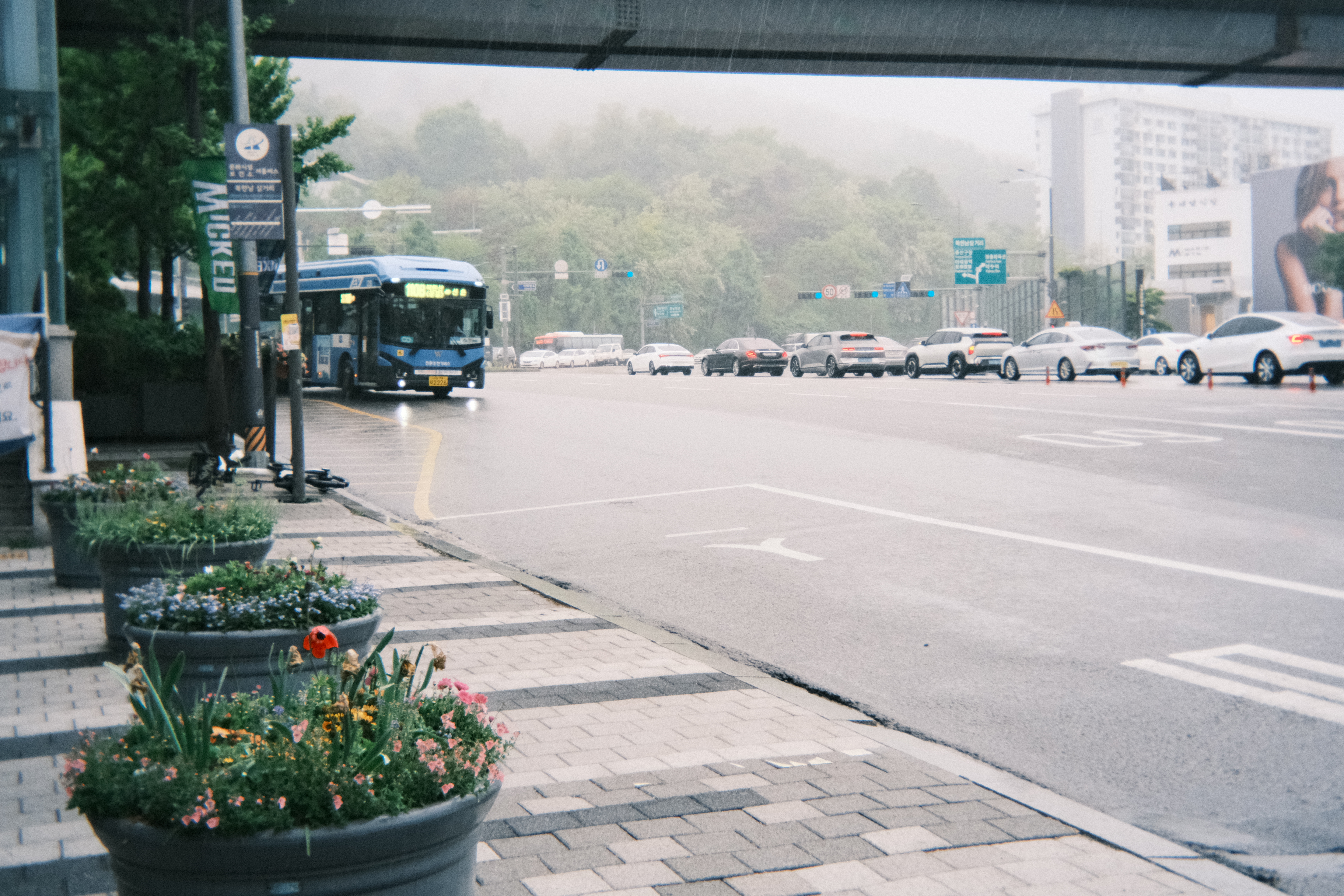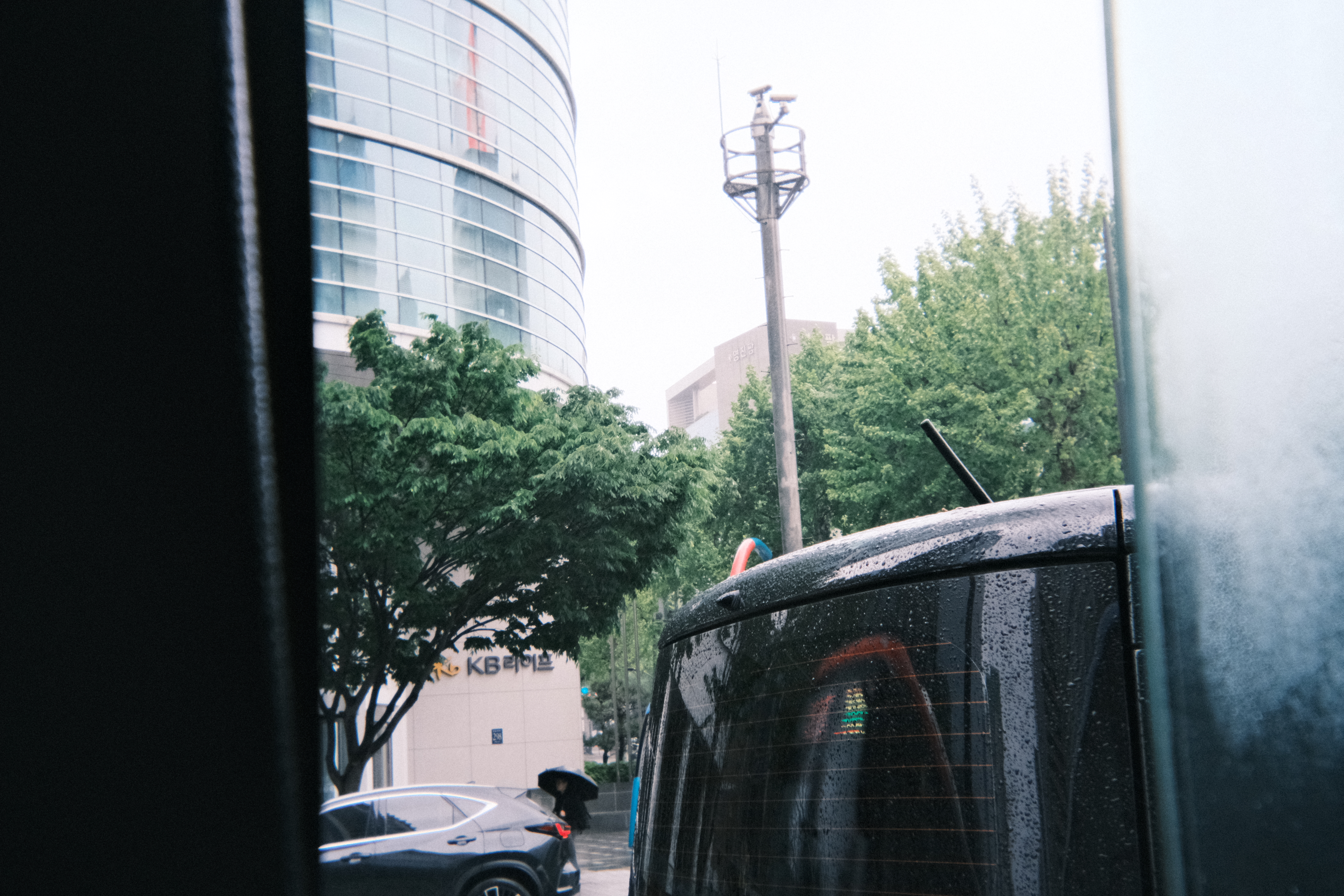 정차한 버스안에서 바깥을 창문을 통해 찍은 사진
